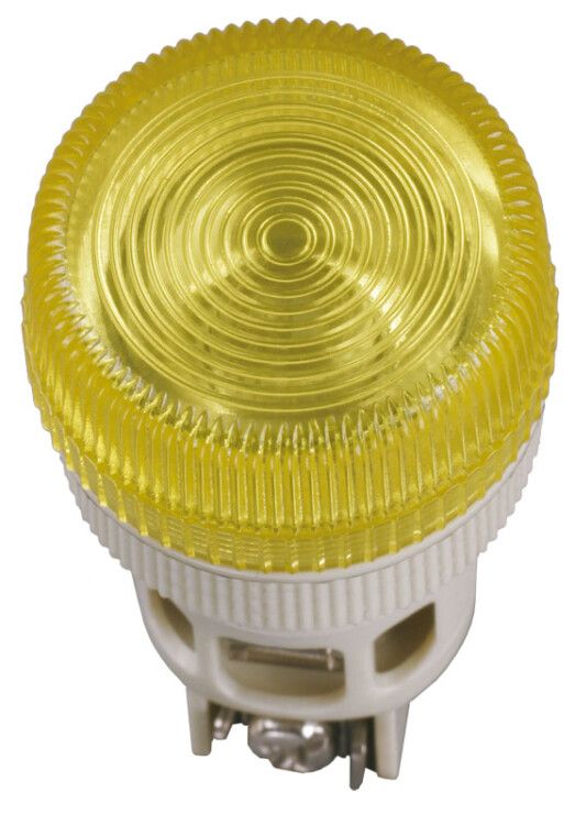 Лампа имеет плоскую линзу с круглой конструкцией и желтый цвет линзы/колпачка. Это позволяет эффективно компоновать щиты и панели с использованием разнообразных цветовых вариантов.