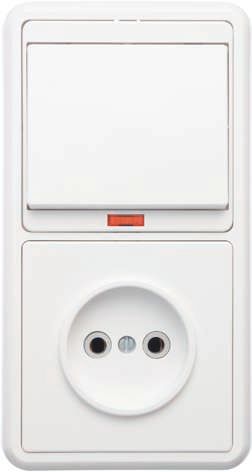 - Объединяет две функции - выключатель и розетку - в одном корпусе, снижает количество точек установки