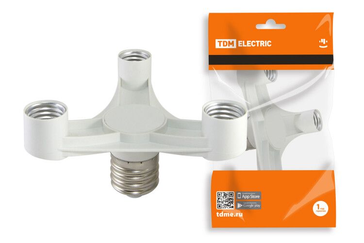 Переходник Е40-3хЕ27, белый, SQ0335-1017 TDM ELECTRIC - это надежное и удобное решение для подключения ламп с цоколем Е40 к светильникам с цоколем Е27. Он обеспечивает простоту монтажа, безопасность использования и длительный срок службы.