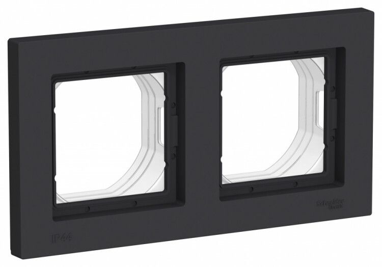 Рамка 2-постовая IP44, Карбон, SE используется для монтажа электроустановочных изделий в местах с риском попадания воды - например, в ванных комнатах, на кухнях, в подъездах или хозяйственных помещениях. Она служит декоративным и функциональным корпусом для двух модульных устройств (выключателей, розеток, переключателей), защищая их от случайного контакта с брызгами и пылью.
