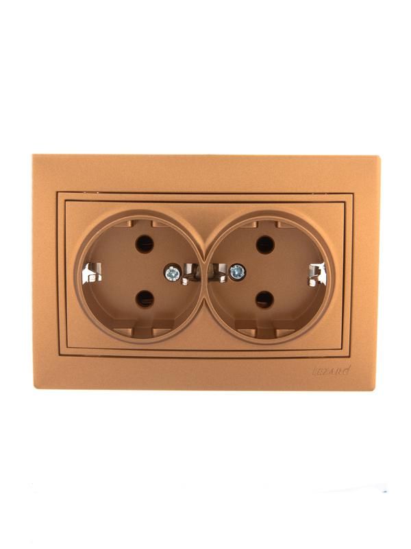 Розетка двойная с заземлением, керамическая вставка, металлик золото Lezard 701-1313-127 - это элегантное решение для скрытой установки в жилых и офисных помещениях, сочетающее надёжную функциональность с дизайном, подходящим для современных интерьеров.