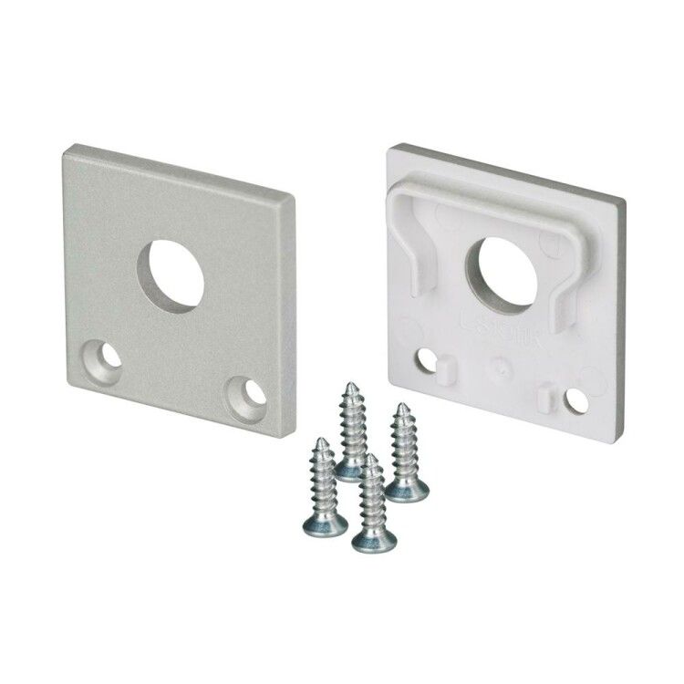 Заглушка SL-LINE-2011M SQUARE с отверстием, пластик устанавливается исключительно на профиль SL-LINE-2011M SQUARE. Для монтажа используйте входящие в комплект саморезы - они совпадают по резьбе и длине с отверстиями в профиле. Установка выполняется вручную: заглушка плотно надевается на торец профиля, затем фиксируется двумя шурупами с каждой стороны. Не требует специальных инструментов, но важно соблюдать равномерное усилие - перетяжка может повредить пластиковую поверхность.