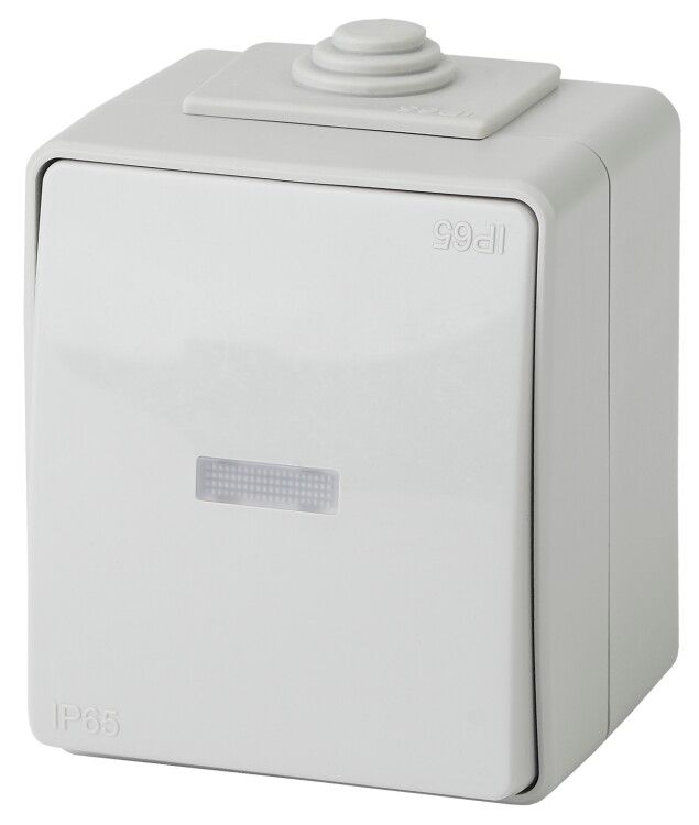 Переключатель с подсветкой 1-клавишный, 10А, 250В, IP65, серый, серия Эксперт используется для включения и выключения электроприборов в местах, где важно видеть положение переключателя в темноте. Применяется в жилых и промышленных объектах: коридорах, туалетах, подъездах, мастерских, на станках и конвейерах. Открытая установка позволяет использовать его там, где невозможно или невыгодно устанавливать скрытую проводку.