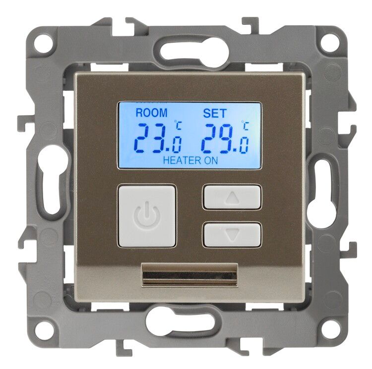 - Заказывайте рамку одновременно с терморегулятором - цвет шампань (04) должен совпадать у обоих элементов