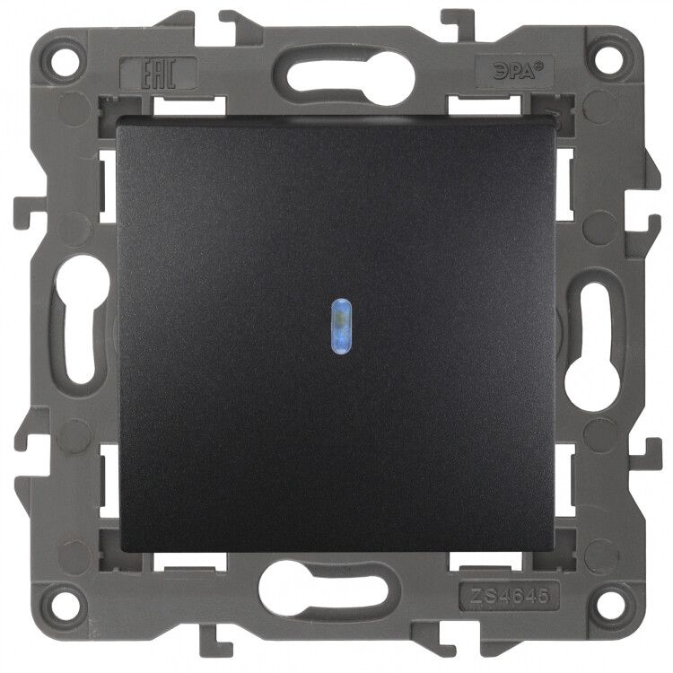 Выключатель одноклавишный, в рамку (скрытого монтажа) с подсветкой антрацит 10А 250В автоматические (безвинтовые) зажимы ЭРА Elegance 14-1102-05 - Б0034219