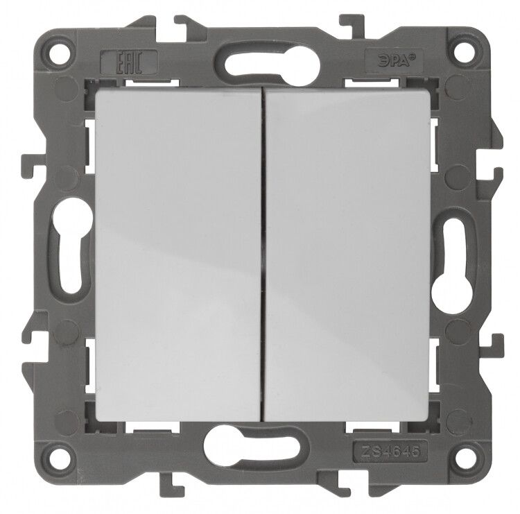 Выключатель двухклавишный, в рамку (скрытого монтажа) белый 10А 250В автоматические (безвинтовые) зажимы ЭРА Elegance 14-1104-01 - Б0034229