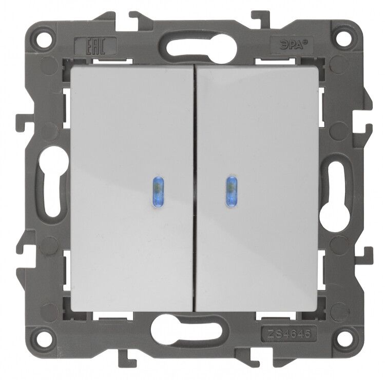 Выключатель двухклавишный, в рамку (скрытого монтажа) с подсветкой белый 10А 250В автоматические (безвинтовые) зажимы ЭРА Elegance 14-1105-01 - Б0034237
