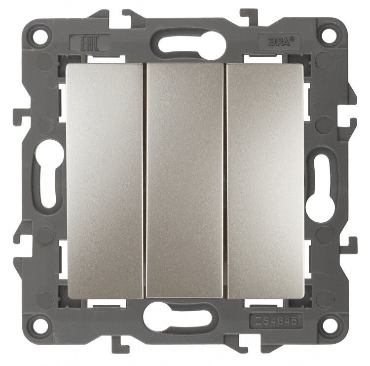 Выключатель тройной 10А 250В IP20 шампань от бренда ЭРА - это надёжный механизм для управления тремя группами освещения в жилых и офисных помещениях. Модель из серии Эра Elegance сочетает простую механическую работу, матовую отделку и совместимость с декоративными рамками, обеспечивая эстетичное решение без потери функциональности.