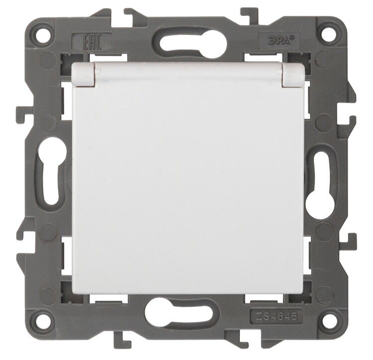 Розетка однофазная скрытого монтажа, в рамку с заземлением со шторками белый крышкой 16А 250В IP20 автоматические (безвинтовые) зажимы 14-2103-01 Эра Elegance - Б0034278