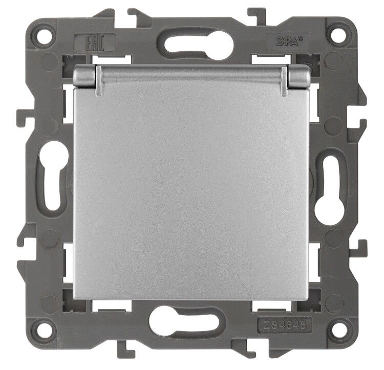 Розетка 2P+E Schuko со шторками и крышкой, 16A 250В, IP20, алюминий - это только механизм. Для завершения внешнего вида необходимо выбрать и установить декоративную рамку из серии Эра Elegance. Механизм крепится в монтажной коробке с помощью распорок и винтов. Установка возможна в любую стандартную глубокую подрозетник (глубина ≥40 мм).