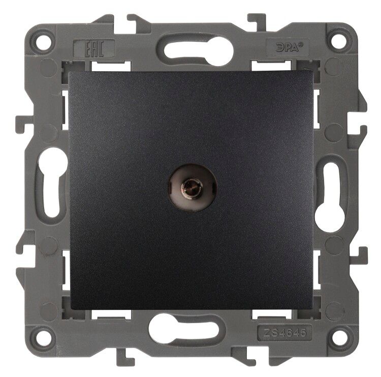 Розетка телевизионная одиночная TV 1 модуль IP20 антрацит (Б0034294) устанавливается в стандартную глубокую подрозетник с внутренним диаметром 68–70 мм. Крепление осуществляется двумя винтами, которые фиксируют механизм внутри коробки. Накладка легко снимается для обслуживания, но не требует частого демонтажа. Совместима с рамками серии Эра Elegance - позволяет собирать единый дизайн с выключателями, розетками и другим оборудованием той же линейки.