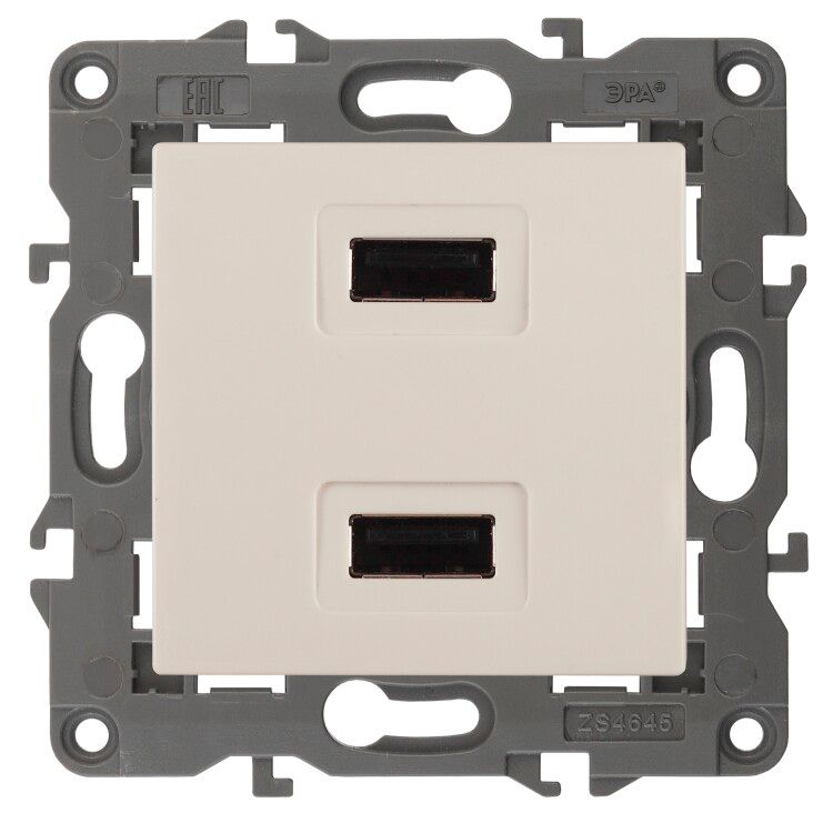 Устройство зарядное USB 230В/5В-2100мА, IP20, серия Elegance - это встраиваемая розетка с двумя портами USB для бытовой зарядки устройств, совмещённая с классической сетевой розеткой. Бренд ЭРА предлагает эту модель как часть серии Elegance для скрытой установки в стену, обеспечивая компактное решение для современных интерьеров.