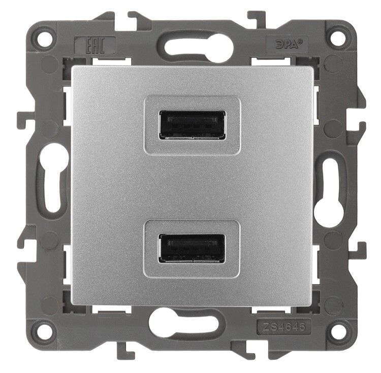 Устройство зарядное USB 230В/5В-2100мА, IP20, алюминий - компактное устройство для быстрого подключения смартфонов и других гаджетов через USB-порт, установленное в стеновой коробке. Выполнено в серии Эра Elegance, артикул б0034360, совмещает функциональную зарядку с эстетичным дизайном для интерьеров с внутренней проводкой.