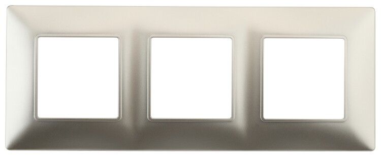 Рамка на 3 поста, Elegance, цвет шампань предназначена для маскировки и эстетического завершения установки трёх стандартных электроустановочных модулей - например, двух выключателей и одной розетки. Применяется в жилых помещениях, офисах, гостиницах и других объектах, где важна чистота линии и минимализм в дизайне. Совместима с механизмами, соответствующими стандартному формату 86x86 мм.
