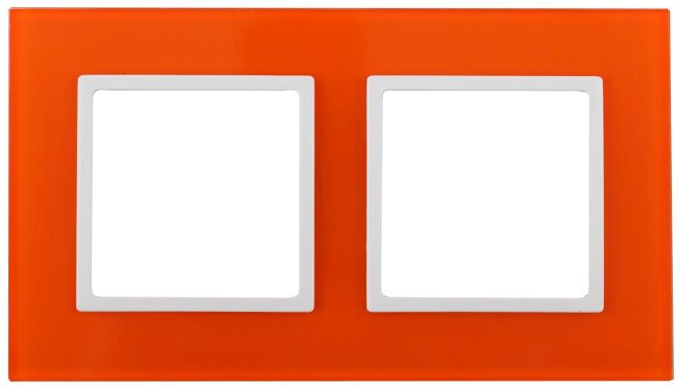 Рамка на 2 поста, стекло, оранжевый/белый, серия Elegance служит для маскировки и эстетичного завершения установки двух устройств - например, выключателя и розетки. Подходит для интерьеров жилых помещений, офисов, гостиниц и общественных зданий, где важна современная, минималистичная эстетика. Используется исключительно с механизмами серии Эра Elegance.