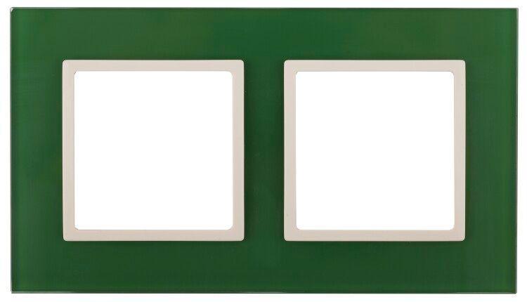 Рамка на 2 поста, стекло, зеленый/слоновая кость, серия Elegance - декоративная рамка для установки на механизмы выключателей и розеток серии Эра Elegance. Изготовлена из закалённого стекла с матовым эффектом, обеспечивает элегантную отделку и совместима исключительно с комплектующими той же серии.