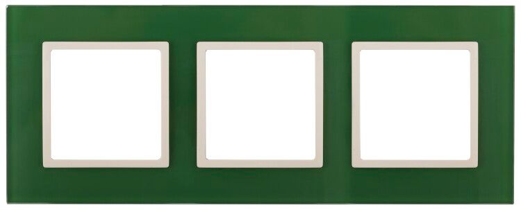 Рамка на 3 поста, стекло, зеленый/слоновая кость, серия Elegance - декоративная рамка от бренда ЭРА, предназначенная для установки на механизмы серии Эра Elegance. Изделие сочетает элегантный внешний вид с надежной конструкцией, обеспечивает чистую линию перехода между стеной и электроустановочными элементами, подходит для интерьеров жилых и общественных помещений.