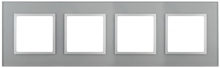 Рамка на 4 поста, стекло, алюминий+алюминий (артикул б0034526, бренд ЭРА) - декоративная рамка для установки четырёх механизмов серии Эра Elegance. Подходит для скрытой установки в стену, обеспечивает элегантный внешний вид за счёт стеклянной поверхности и алюминиевой окантовки.