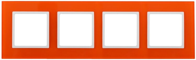 Рамка на 4 поста, стекло, оранжевый/белый, серия Elegance предназначена исключительно для комплектации четырёх механизмов серии Эра Elegance - выключателей, розеток, переключателей и других устройств той же серии. Она не является самостоятельным электроустановочным изделием, а служит декоративной рамкой, скрывающей зазор между корпусом механизма и стеной. Применяется в жилых помещениях, офисах, отелях и общественных зонах, где требуется стильный, но нейтральный акцент.