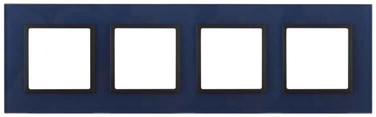 Рамка на 4 поста, стекло, синий/антрацит (артикул б0034537, бренд ЭРА) - декоративная рамка из закалённого стекла для установки четырёх механизмов серии Эра Elegance. Подходит для интерьеров с современным дизайном, где важна элегантная отделка и чёткая геометрия.