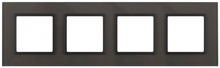 Рамка на 4 поста, стекло, серый/антрацит (артикул б0034540, бренд ЭРА) - декоративная рамка для установки на механизмы серии Эра Elegance. Изготовлена из закалённого стекла с глянцевой поверхностью, обеспечивает элегантный внешний вид и совместима только с оригинальными компонентами этой серии.