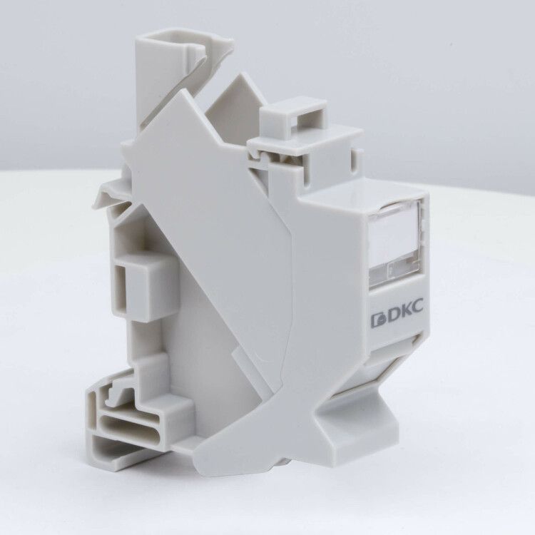 Адаптер на DIN-рейку для модулей Keystone (для модулей форм-фактора S19) от DKC позволяет устанавливать компактные коммуникационные модули в распределительных шкафах на стандартной DIN-рейке. Этот адаптер обеспечивает надёжное крепление модулей серии RAM telecom, таких как RNK5EF90TL, RNK6F90TL и RNK6AF90TL, сохраняя компактность и удобство обслуживания.
