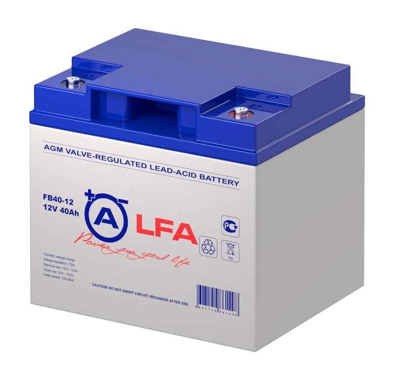 Аккумулятор 12 вольт 40 ампер-час от LFA с артикулом fb40-12 lfa - герметичная свинцово-кислотная тяговая батарея, предназначенная для длительной работы в условиях постоянного разряда и частой зарядки. Подходит для электрооборудования, требующего надежного источника энергии без обслуживания.