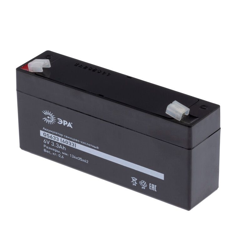 Аккумулятор GS633 (Cвинцово-кислотный 6V 3,3) (20/640) | Б0050075 ЭРА (Энергия света) - это надежное и высококачественное питание, которое подходит для различных применений. Он обладает рядом преимуществ, которые делают его отличным выбором: