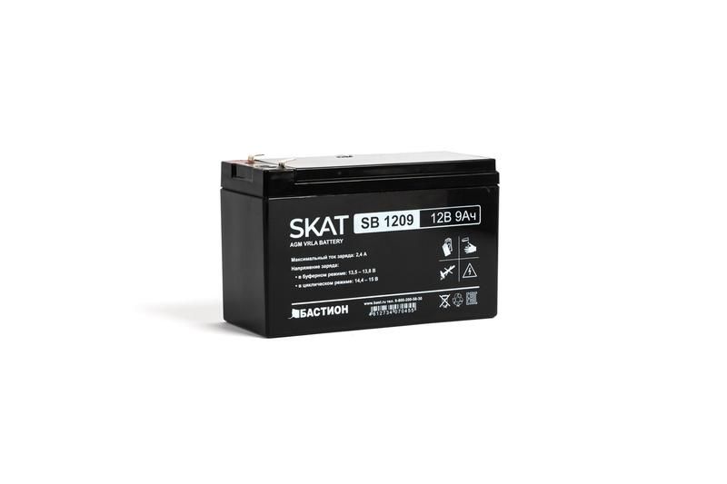 Аккумулятор SKAT SB 1209 свинцово-кислотный тип AGM 12V 9Ач Iзар. 2,7 А, ножевые клеммы - 2540 Бастион