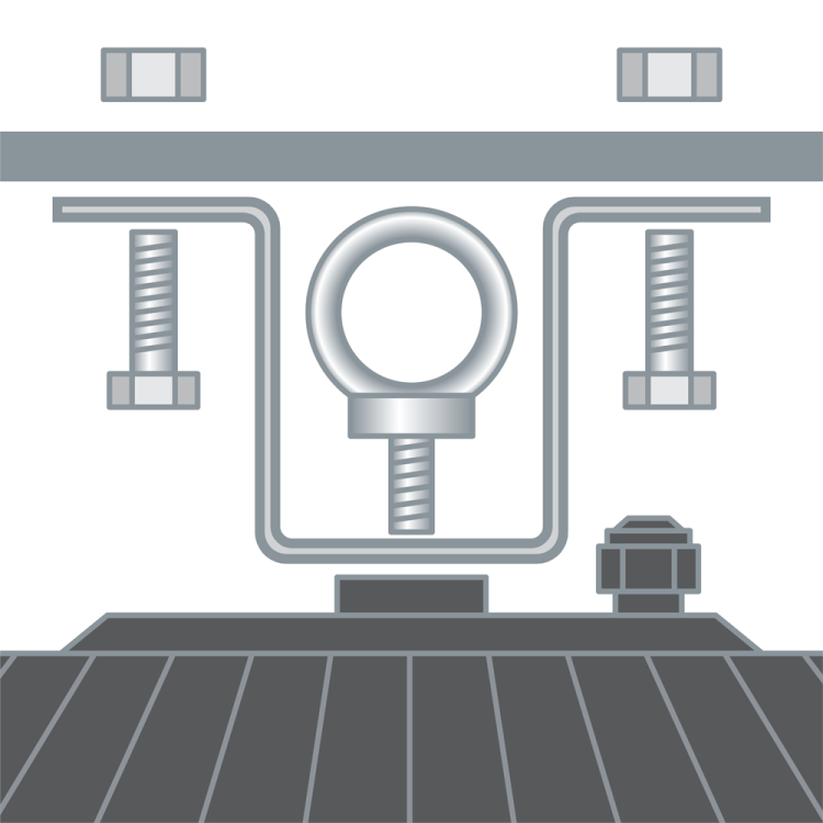 - Закрепить скобу с помощью рым-болта (не входит в комплект).