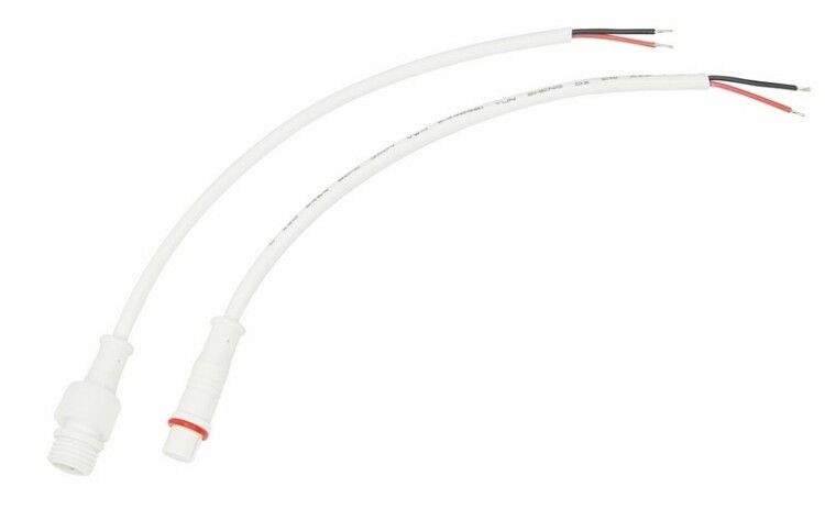 Разъём имеет стандартизированную форму, совместим с аналогичными 2-pin герметичными разъёмами других производителей, если они соответствуют тем же геометрическим параметрам. Монтаж выполняется просто: достаточно вставить штекер в розетку до щелчка - фиксация происходит автоматически. Обратите внимание: кабель не рассчитан на частые изгибы или механическую нагрузку на место соединения - рекомендуется использовать хомуты или кабельные каналы для фиксации провода.