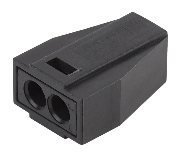 Клемма СМК с пастой серии 302, 2 отверстия, 0,5-2,5 мм2 совместима с однопроволочными проводами и многожильными проводами, имеющими металлический наконечник. Монтаж выполняется втычным способом - провод вставляется в отверстие до упора, фиксируется защёлкой. Для надёжного соединения не требуется инструмент - достаточно усилия рук. Контактная паста уже нанесена внутри, дополнительно смазывать не нужно.
