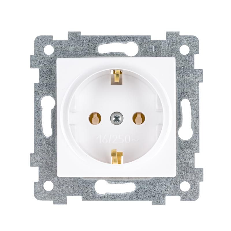 Механизм розетки одноместной с заземлением скрытой установки 16А IP20 используется для монтажа в стеновые коробки в помещениях с нормальной влажностью - жилые комнаты, офисы, кухни, гостиные. Подходит для подключения устройств мощностью до 3,5 кВт (например, телевизоров, зарядных устройств, фенов, кофемашин). Не предназначен для открытой установки или помещений с высокой запылённостью, влагой или агрессивной средой.