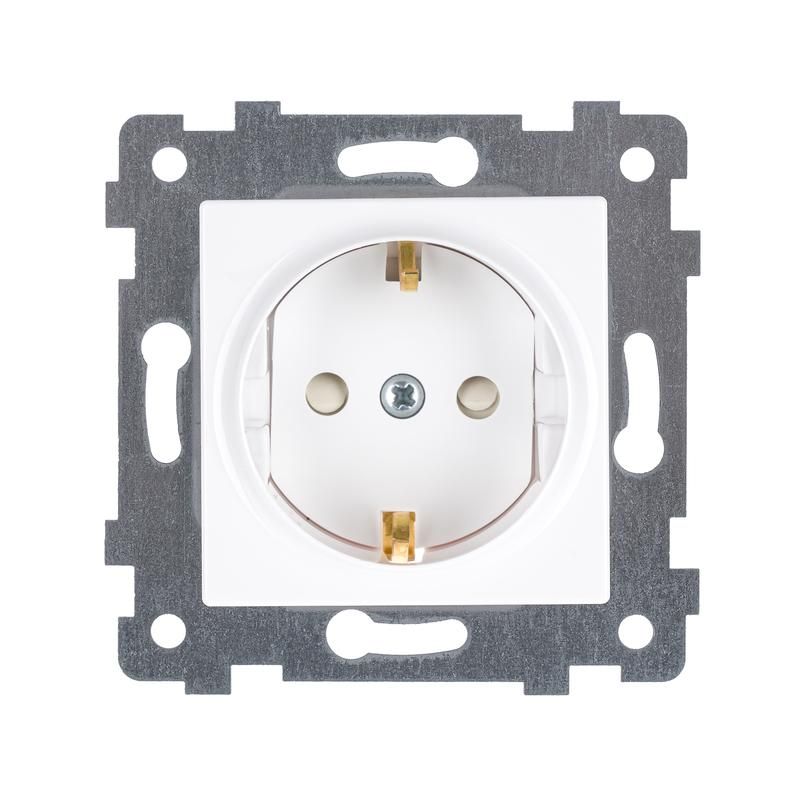 Механизм розетки Кунцево-Электро Аксиома 121003 предназначен для монтажа в стеновые коробки со скрытой проводкой. Обеспечивает безопасное подключение устройств мощностью до 3,5 кВт (16 А, 220 В) с трёхконтактной вилкой. Шторка предотвращает доступ к токоведущим частям при отсутствии вилки, что особенно важно в детских комнатах, больницах и школах.