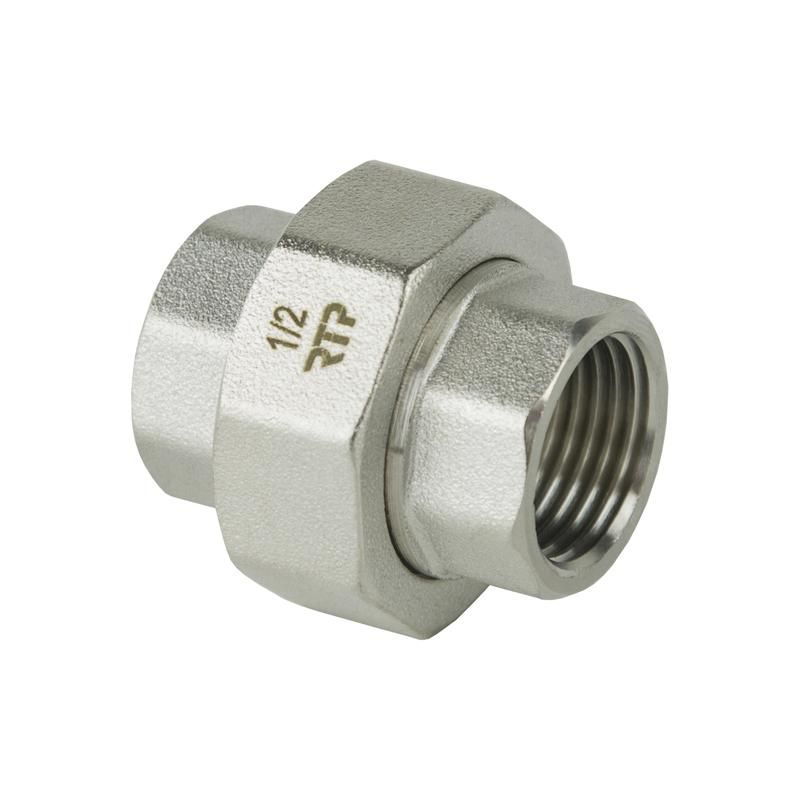 Американка прямая латунь внутренняя/внутренняя резьба 1/2 дюйм еврослот никель RTP - соединительный элемент для трубопроводов, обеспечивающий быстрый демонтаж без перекручивания труб. Подходит для систем водоснабжения, отопления и сжатого воздуха, где требуется частое обслуживание.