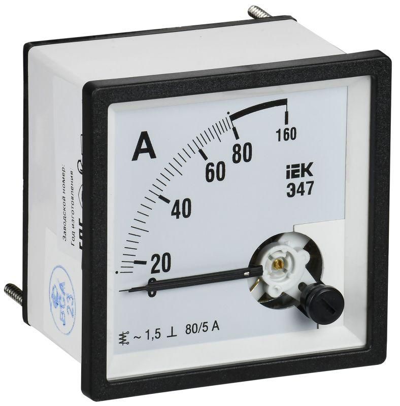 Амперметр Э47 40/5А класс точности 1,5 72×72 мм от IEK предназначен для измерения переменного тока в распределительных щитах и панелях на производстве, в офисах и жилых зданиях. Устройство работает через трансформатор тока, имеет аналоговый индикатор и соответствует российским стандартам измерений.