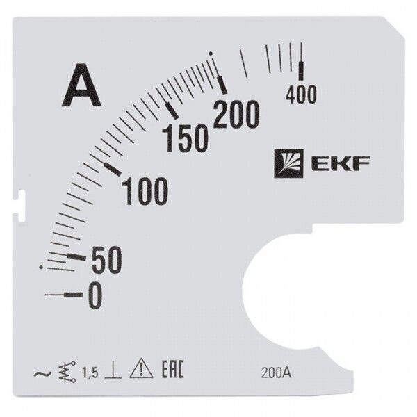 Шкала сменная для A961 200/5А-1,5 от EKF - заменяемый элемент для аналогового амперметра AMA-961, предназначенный для точной индикации тока до 200 А в электрощитах промышленных и бытовых объектов.