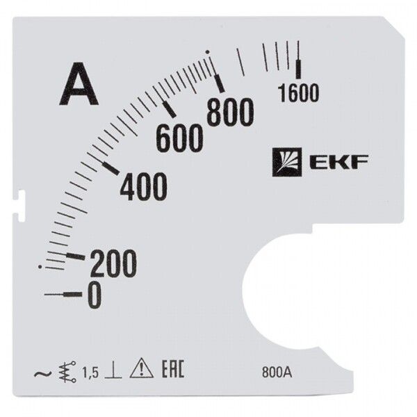 Шкала сменная для A961 800/5А-1,5 от EKF предназначена для замены оригинальной шкалы на аналоговом амперметре AMA-961 в электрощитах промышленных и бытовых объектов. Эта шкала обеспечивает точную визуализацию тока до 800 А и совместима с сериями PROxima.