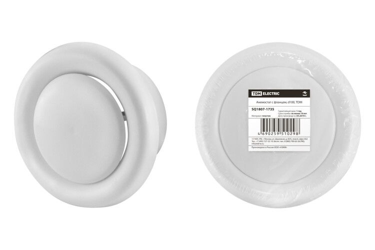 Анемостат с фланцем, d100 от SQ1807-1735 TDM ELECTRIC - это устройство, предназначенное для организации приточных и вытяжных систем вентиляции в жилых, торговых, офисных и производственных помещениях.