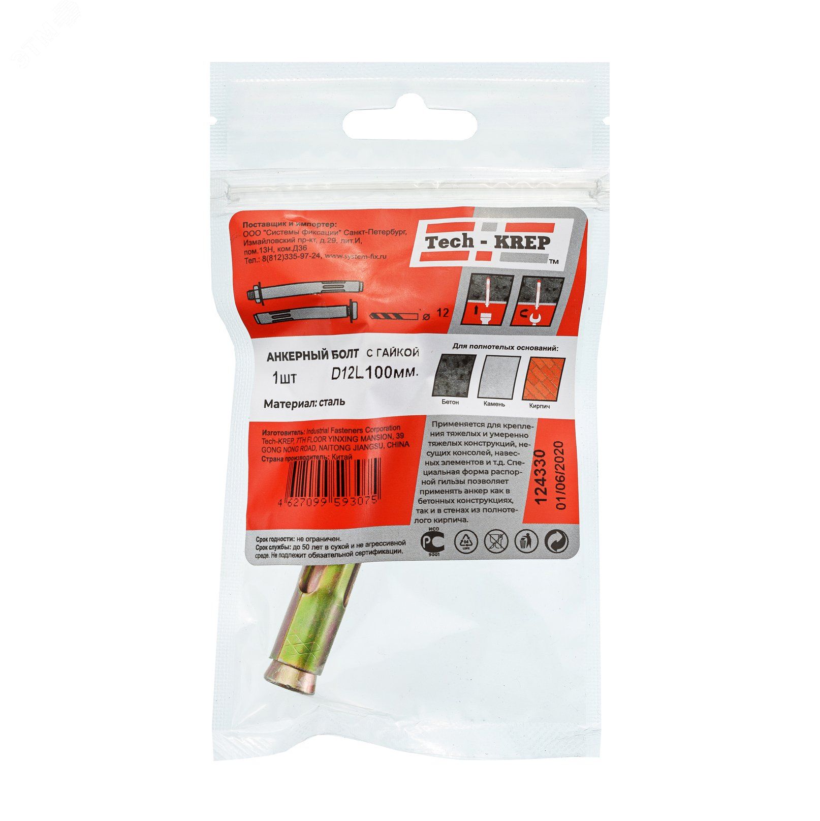 | Болт анкерный 12х100 с гайкой (1шт) - 124330 | 14.03.2026 | Под заказ | 41,07 ₽ | уп. | от 30 дней |