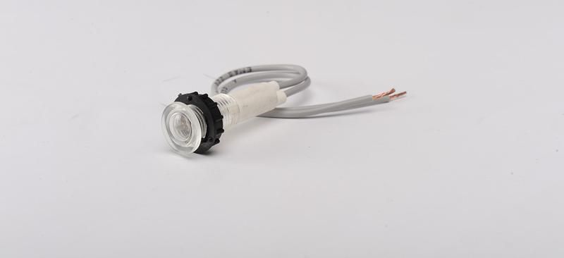 Арматура сигнальная 10мм с силиконовым проводом белого цвета, Лампа индикаторная в сборе устанавливается в отверстие диаметром 10–10,5 мм. Крепление осуществляется через резьбовое кольцо на корпусе - достаточно затянуть гайку с тыльной стороны панели. Силиконовый провод позволяет легко направить выводы в нужную сторону без риска повреждения. Для подключения используйте клеммы или разъёмы, рассчитанные на ток до 50 мА.