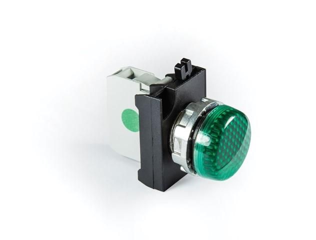 Арматура сигнальная со светодиодом 100–250 В переменного тока зеленая, Лампа индикаторная в сборе применяется для отображения рабочего состояния оборудования: включения, нормального режима, готовности. Подходит для установки в распределительных щитах, пультах управления, станциях автоматизации, системах освещения и других объектах, где требуется надежная световая индикация. Используется в промышленной автоматике, ЖКХ, энергетике и на транспорте.