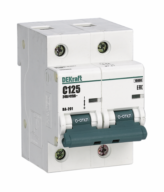 Выключатель автоматический двухполюсный ВА-201 2Р 125А характеристика D 10кА | 13030DEK DEKraft APC