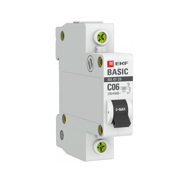 Выключатель автоматический однополюсный ВА 47-29 6А C 4,5кА Basic | mcb4729-1-06C EKF