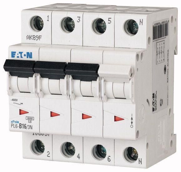 Автоматический выключатель 16А, кривая отключения В, 3+N полюса, откл. способность 6 кА - 106037 EATON