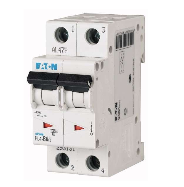 Выключатель автоматический 20А кривая отключения С 2 полюса отключающая способность 4,5 кА PL4-C20/2 - 293143 EATON - это надежное и безопасное устройство для защиты электрических сетей от перегрузок и короткого замыкания.