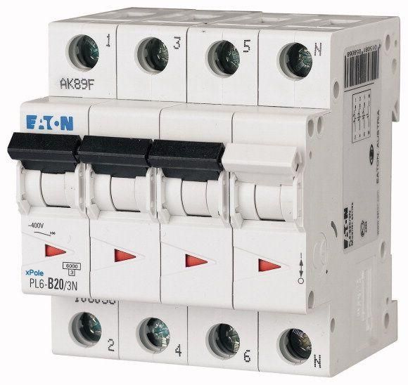 Выключатель автоматический 20А кривая отключения В 3+N полюса отключающая способность 6 кА - 106038 EATON