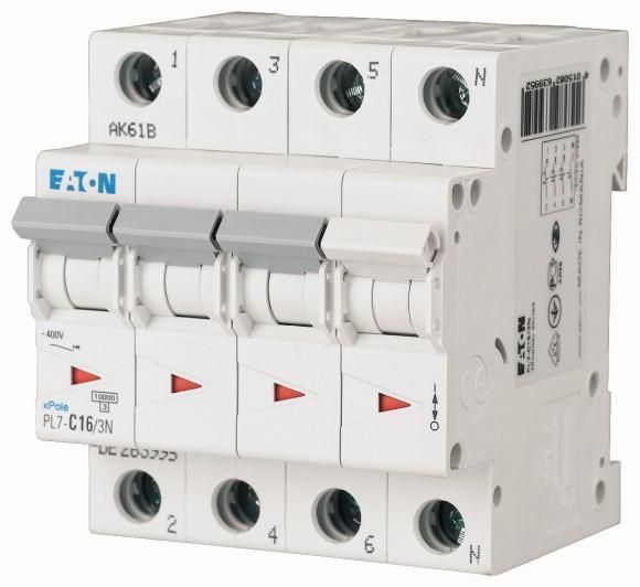 Автоматический выключатель 2,5А, кривая отключения С, 3+N полюс, отключающая способность 10 кА PL7-C2,5/3N - 165270 EATON