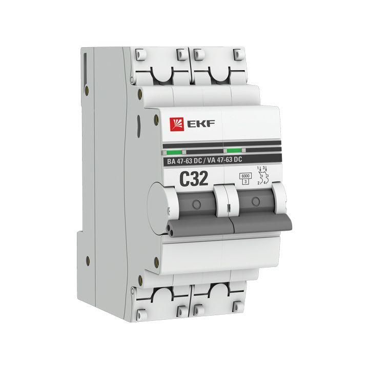 Автоматический выключатель 2P 32А (C) 6кА ВА 47-63 DC EKF PROxima - mcb4763-DC-2-32C-pro