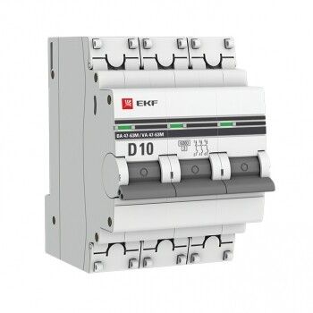 Автоматический выключатель 3P 10А (D) 6кА ВА 47-63M c электромагнит. расцепителем PROxima | mcb4763m-6-3-10D-pro EKF не поставляется, возможно товар снят с производства, по запросу, наши инженеры помогут подобрать аналоги, замены.